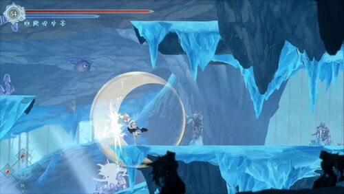 アフターイメージ、新しい武器を装備したところ 満月なる新スキルを使えるようになりました。 威力は控えめなれど主人公を中心に全方向をカバ ーするなかなかの優れもの。 中ボスクラスが続々と登場します。 次なるお相手は氷の騎士イゾッツ。 多彩な攻撃を…